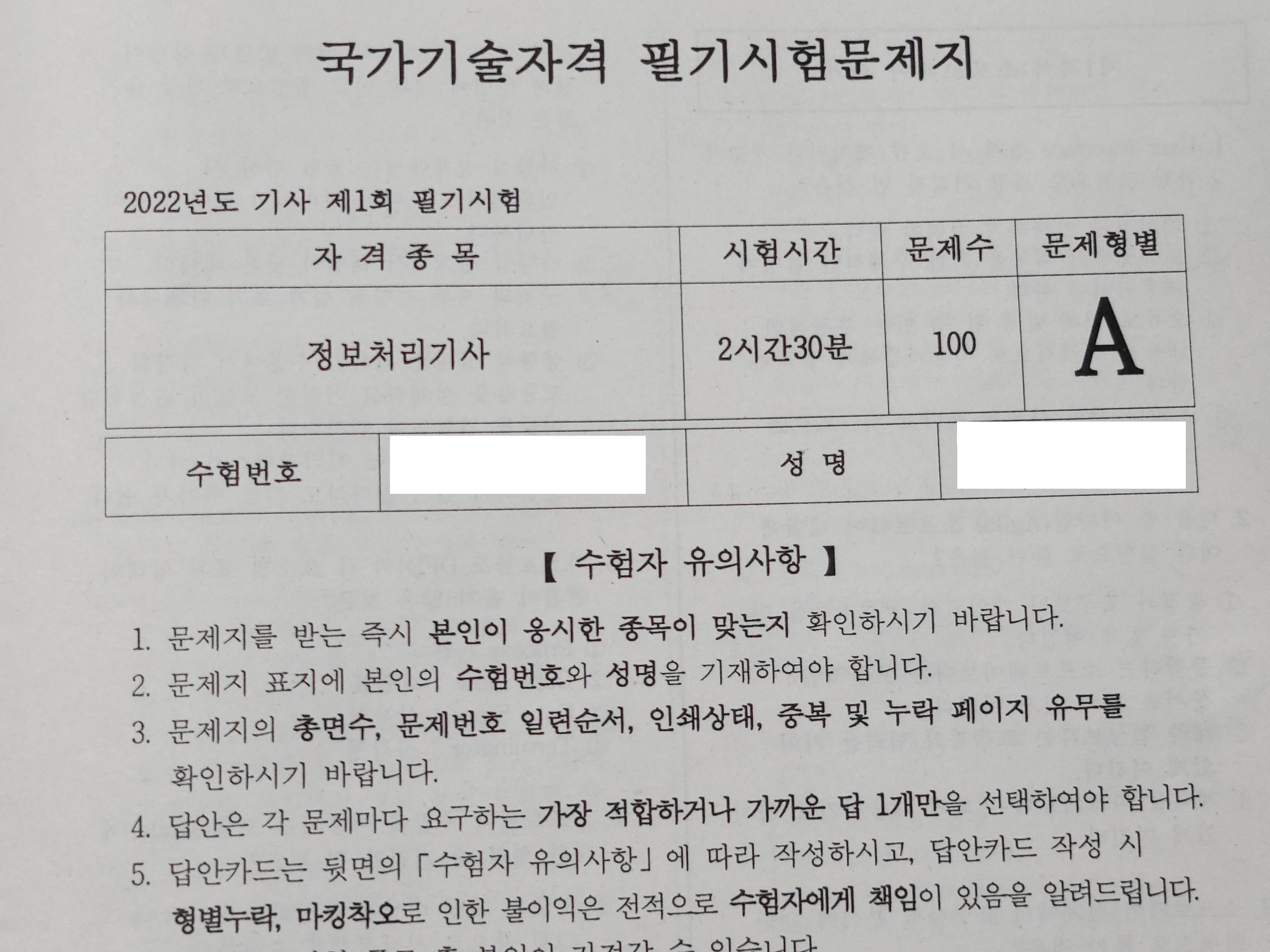 제4과목 프로그래밍 언어 활용은 비전공자에 제대로 된 학습이 되지 않아 제대로 알고 답안을 마킹한 문제가 거의 없을 정도로 어려움을 겪었고, 제5과목 정보시스템 구축 관리는 기출에 없는 새로운 문제들이 많이 나와서 점수가 낮았습니다.